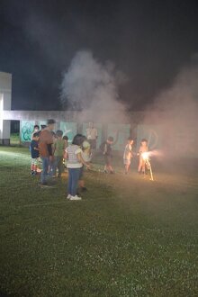 中庭で花火をしました。