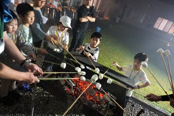 皆で作った竹串で焼きマシュマロを食べました。