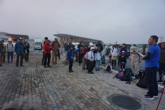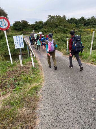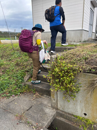 クマ対策で爆竹や笛を鳴らしながら・・・