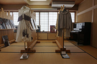 長井紬や長井さしこを新たな視点で表現するブランド「LCMN」の作品や、学生デザイナーが制作した衣装写真を展示。