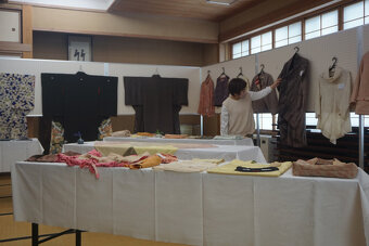 こちらはアンティークの着物と身近な材料で染めた作品の展示コーナー